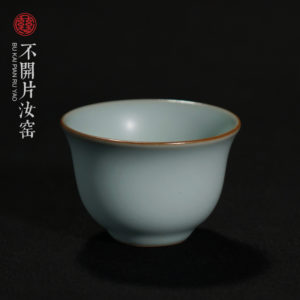 青澹窑汝瓷-知己杯 慈字底不开片 口沿金线 手工汝瓷礼盒装