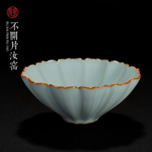 青澹窑汝瓷-荷瓣杯 开片可养 口沿金线 冰裂釉 手工汝瓷礼盒装