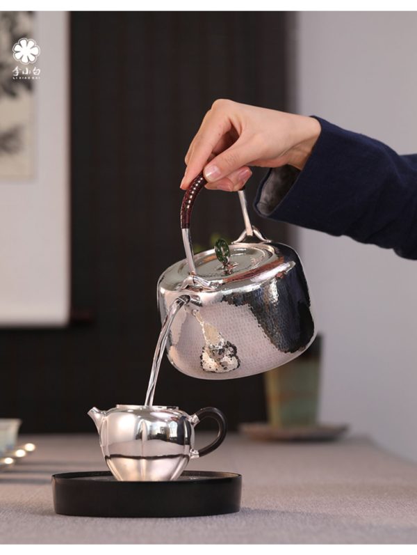 1. 银壶能净化水质,可以去除大部分水污染物,有效降低水质污染。 2. 银壶能软化水,煮水时释放银离子,使水柔薄爽滑。 3. 李小白是中国国务院授予的国家非物质文化遗产。 4. 李小白是中国国家非遗司授予的传统工艺工作站,肩负银器行业的传承工作。 5. 李小白是中国云南省政府授予的知名品牌,云南老字号。 6. 李小白银壶安全可靠,产品符合全球食品安全BRC认证。 7. 李小白银壶拥有48项国家专利。国内外8所大学实践基地。