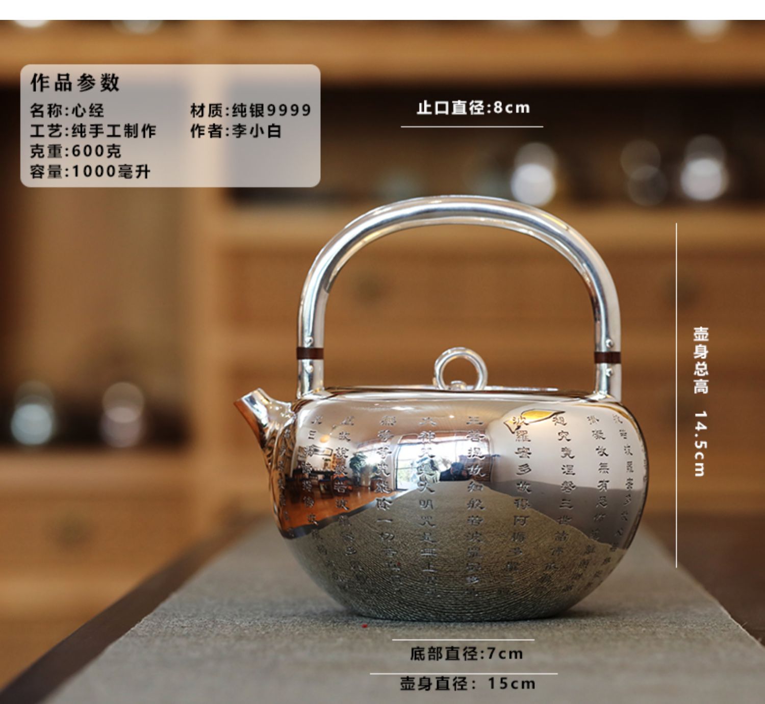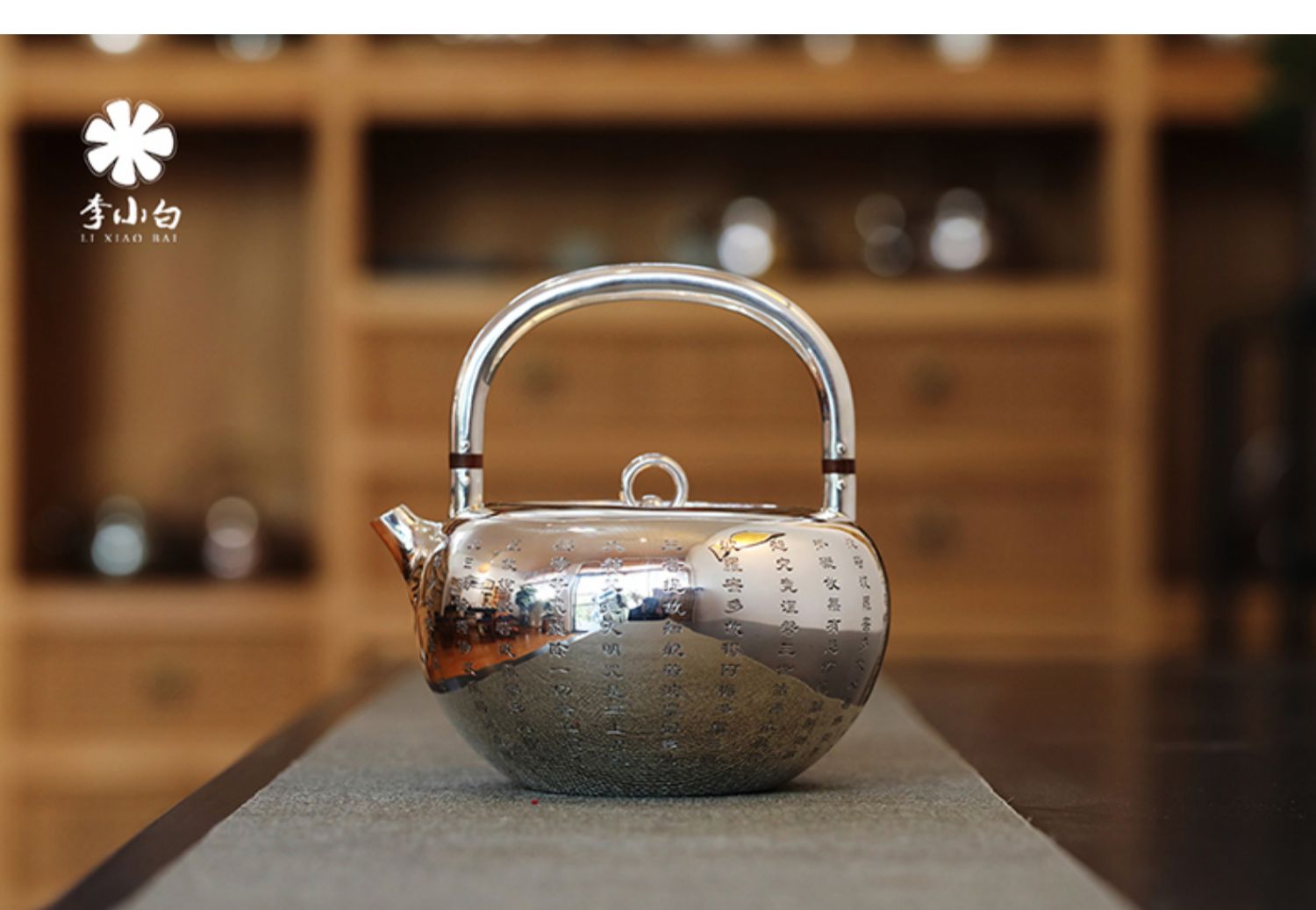 1. 银壶能净化水质,可以去除大部分水污染物,有效降低水质污染。 2. 银壶能软化水,煮水时释放银离子,使水柔薄爽滑。 3. 李小白是中国国务院授予的国家非物质文化遗产。 4. 李小白是中国国家非遗司授予的传统工艺工作站,肩负银器行业的传承工作。 5. 李小白是中国云南省政府授予的知名品牌,云南老字号。 6. 李小白银壶安全可靠,产品符合全球食品安全BRC认证。 7. 李小白银壶拥有48项国家专利。国内外8所大学实践基地。