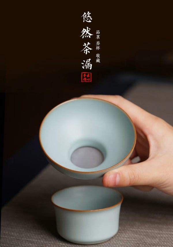 青澹窑汝瓷-悠然茶漏 开片可养 口沿金线 冰裂釉 手工汝瓷礼盒装