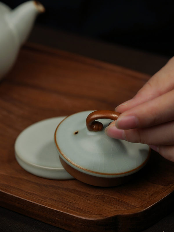 青澹窑汝瓷-青澹盖置 开片可养 口沿金线 冰裂釉 手工汝瓷礼盒装